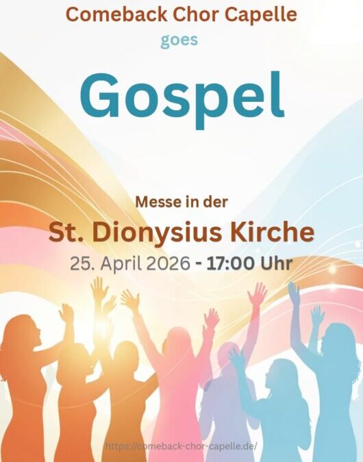 Der Comeback Chor Capelle singt Gospel in der Messe am 25. April 2026 um 17.00 Uhr in der St. Dionysius Kirche in Capelle.